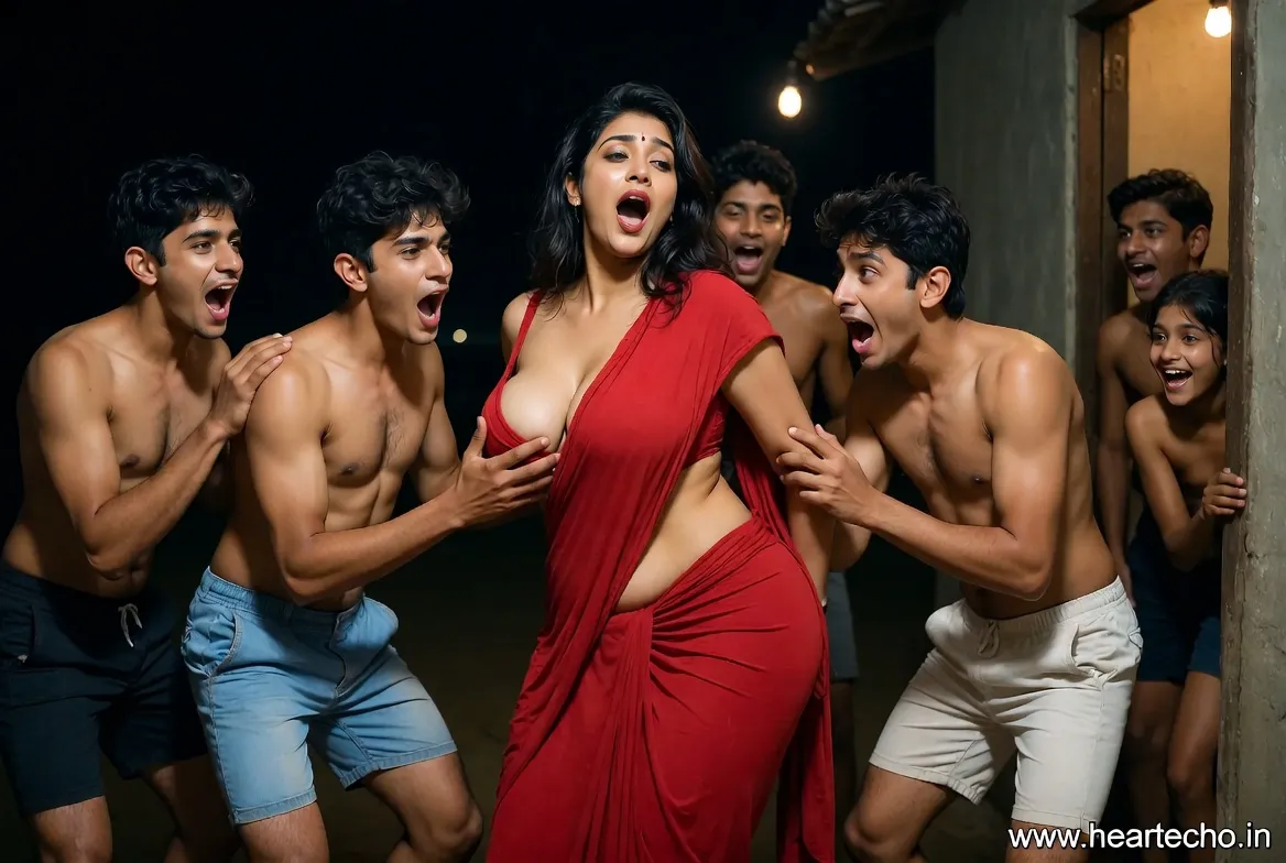 Niharika: Main bahar aayi, chut ko dhone ke liye. Paani le kar baithi, finger andar daal kar clean kar rahi thi. Tab notice kiya ki yeh ladke dekh rahe hain. Shocked hui, par gussa nahi aaya. Unke young bodies dekh kar garam hui. "Tum log yahaan kya kar rahe ho? Dekh rahe the?"